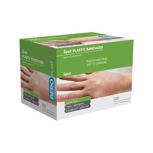 The AEROPLAST Plastic spot dressing is a wash proof sheer bandage recommended for general application...