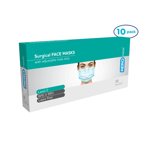 The AeroMask face mask is a premium quality 3ply surgical mask with Level 2 protection rating. The masks are high quality with earloops and come with nose clips to ensure secure fitting.