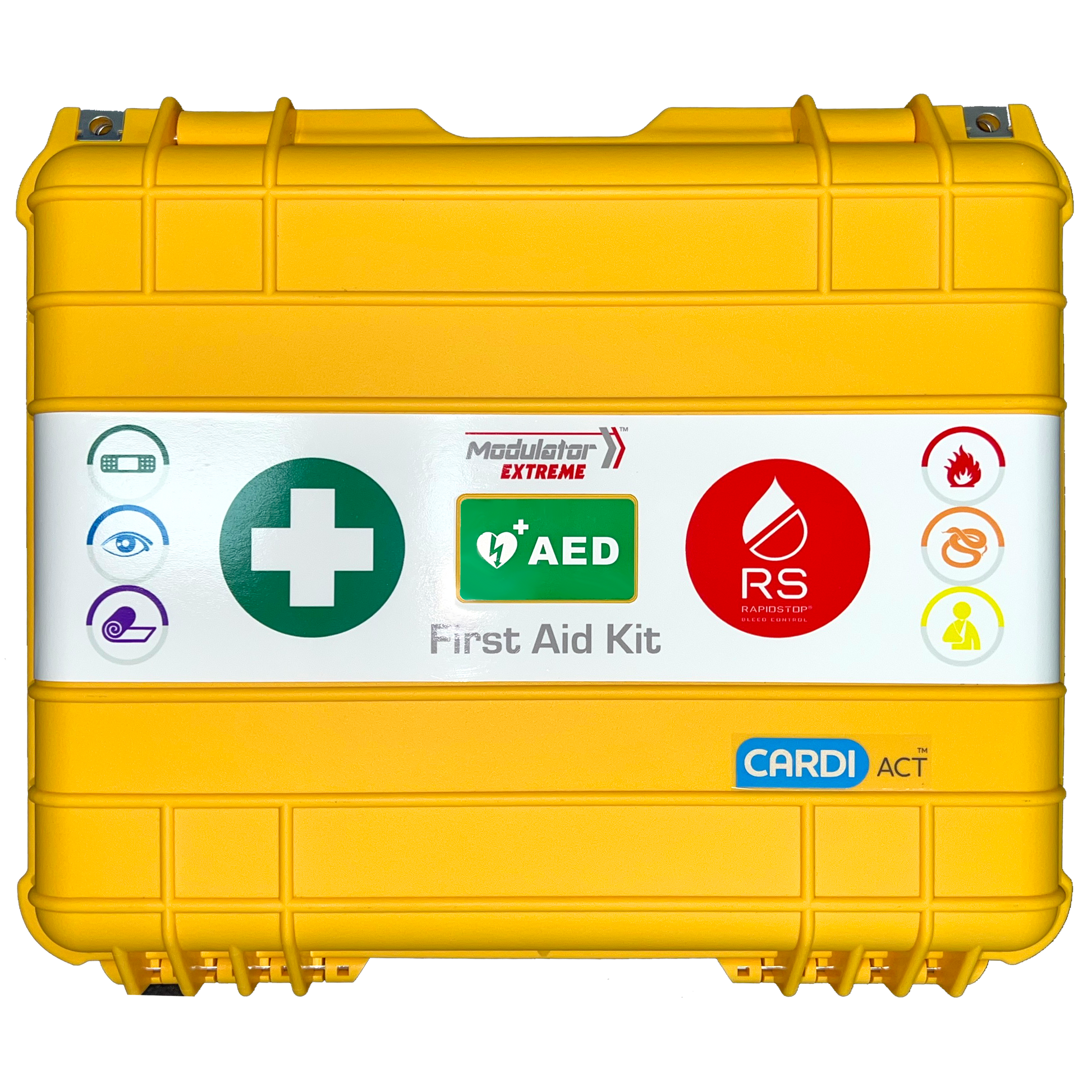 An industry first kit that combines essential first aid items in 6 easily identifiable modules with a tourniquet and Israeli bandages packaged in a tough, practical and easy to access case. Ready for emergencies, Modulator Extreme has the added benefit of space to add in your choice of Heartsine AED*.
